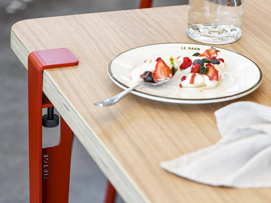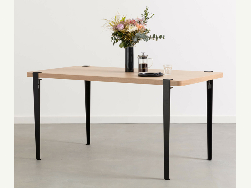 Tischplatte aus PEFC-zertifiziertem Holz mit abgerundeten Ecken.